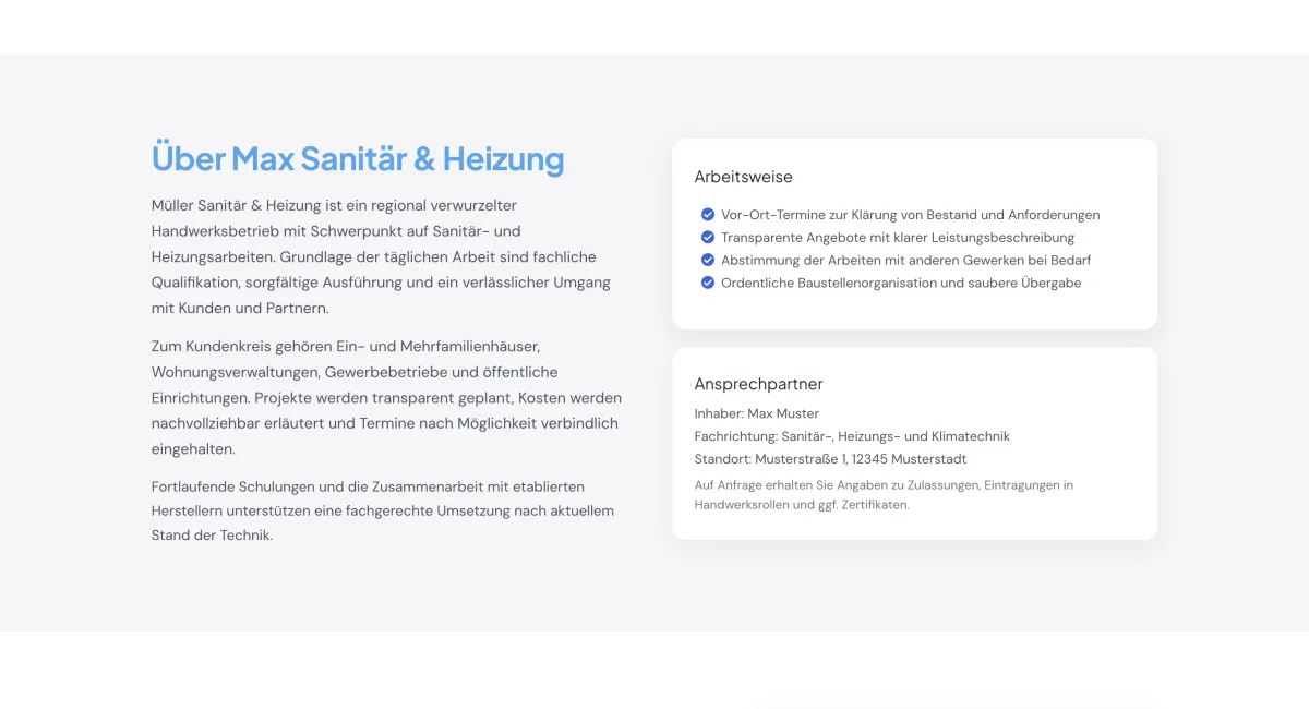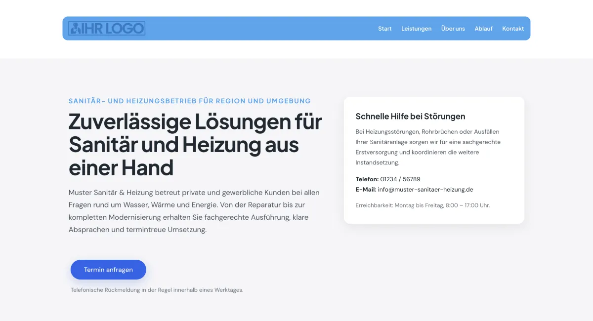 Alle Inhalte, Layouts und Funktionen werden bei einer Beauftragung individuell auf das jeweilige Unternehmen angepasst.